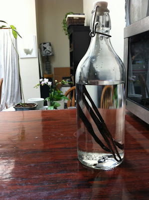 {This is actually pretty ridiculously easy. Directions are barely required. All you really need is vanilla beans (I used 3-4) vodka, and a bottle to mix in. I used a pop top bottle from Ikea.}
